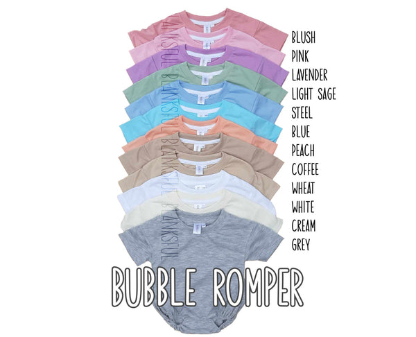 This listing is for specialty items such as bubble rompers, sweatshirt bubble rompers, infant sweatshirts, & shortie rompers.